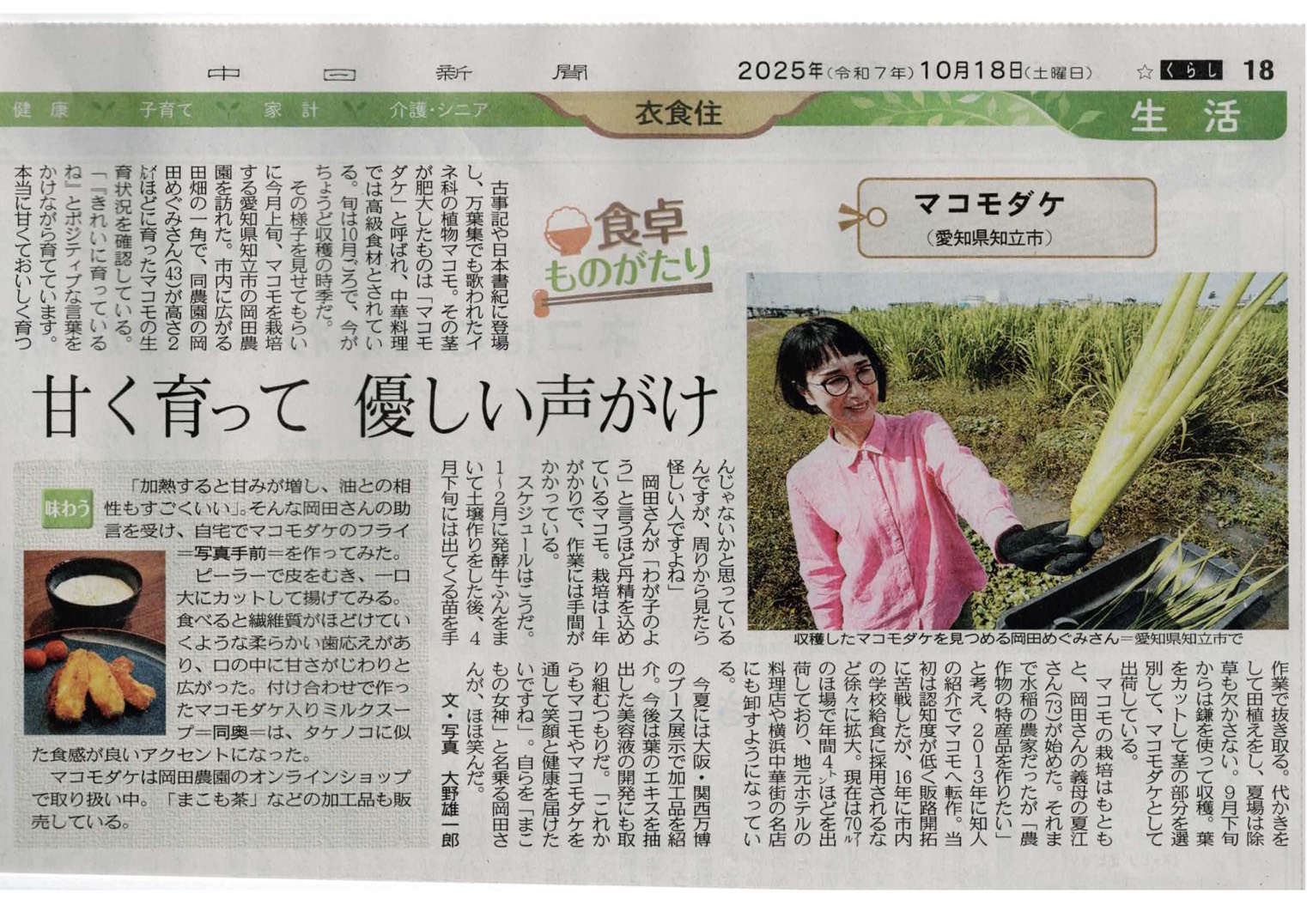 『中日新聞』にて、真菰麗妃ブランドの岡田めぐみが取材されました!